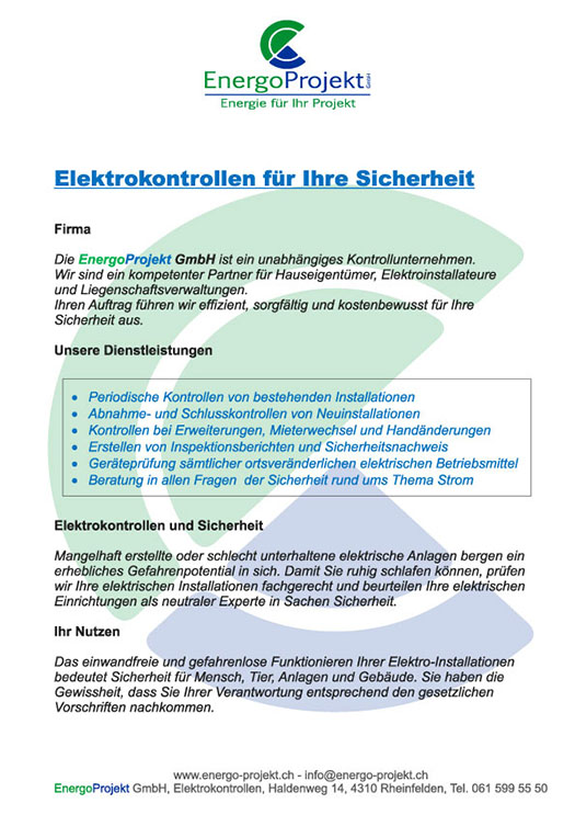 • Beratung in allen Fragen der Sicherheit rund ums Thema Strom