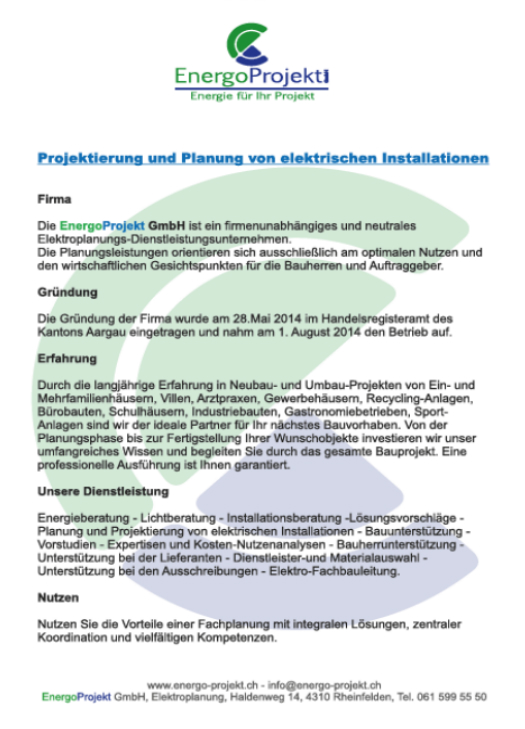 Planung und Projektierung von elektrischen Installationen